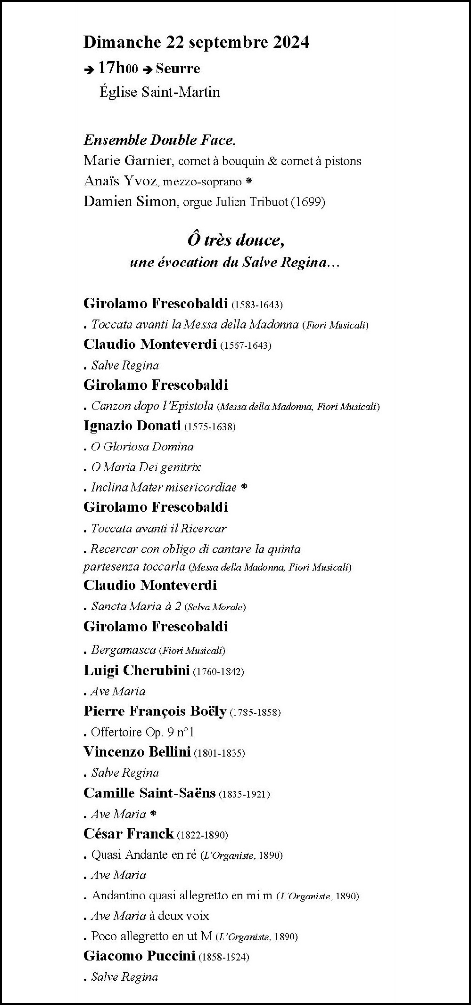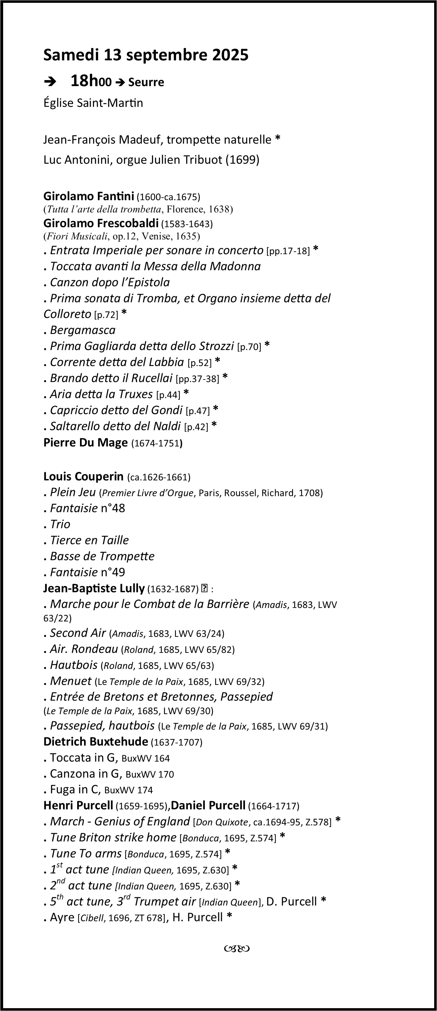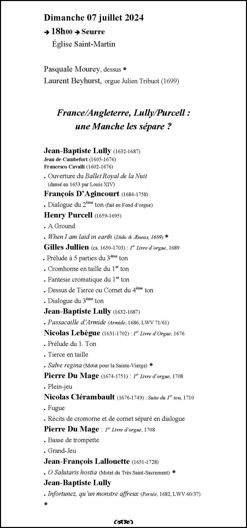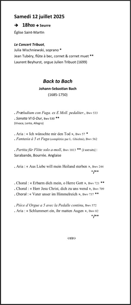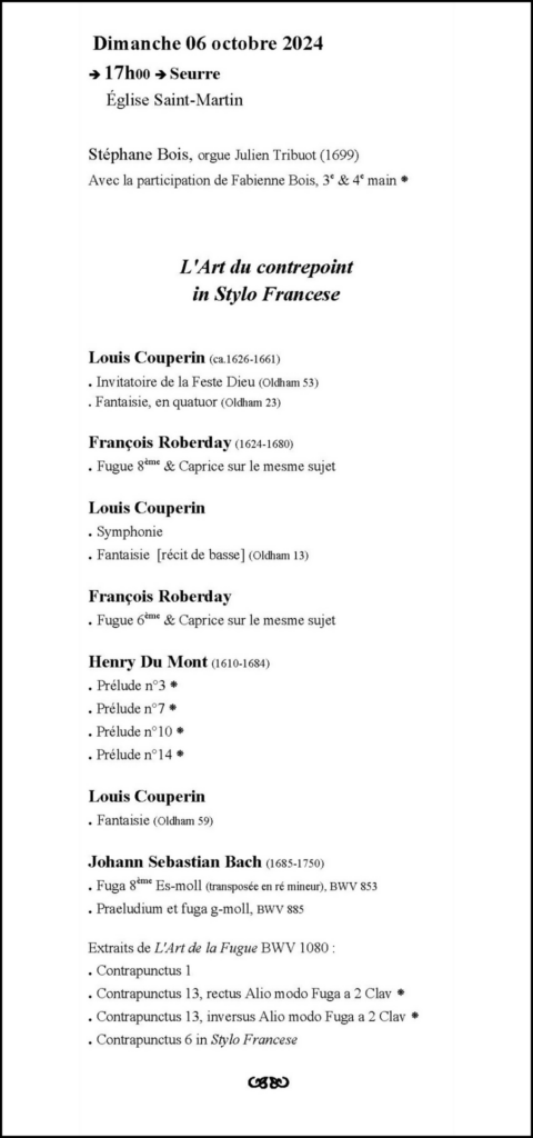 LES RENCONTRES DE MUSIQUE ANCIENNE DE SEURRE Saison 2025 (27èmes rencontres) Saison 2024 (26èmes rencontres)