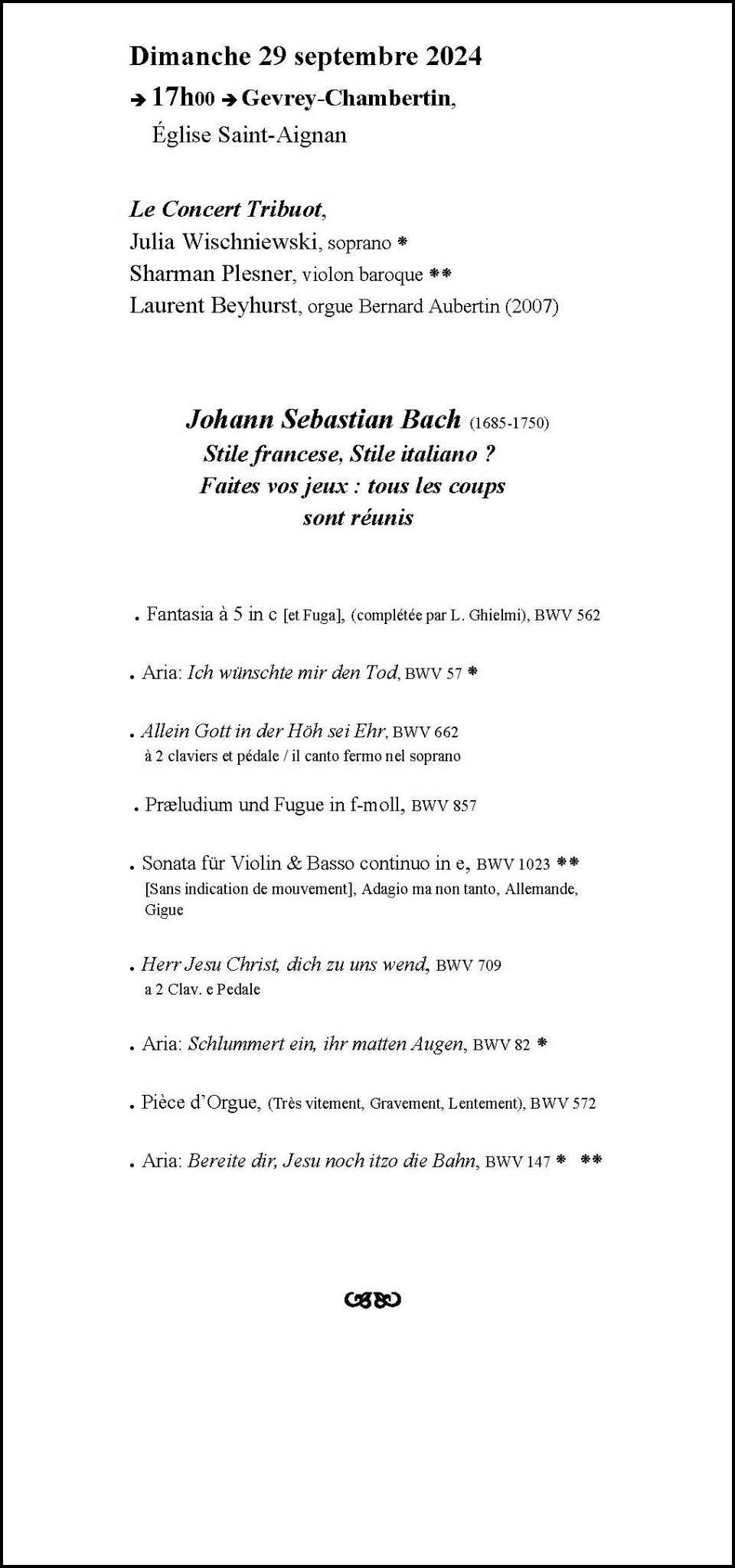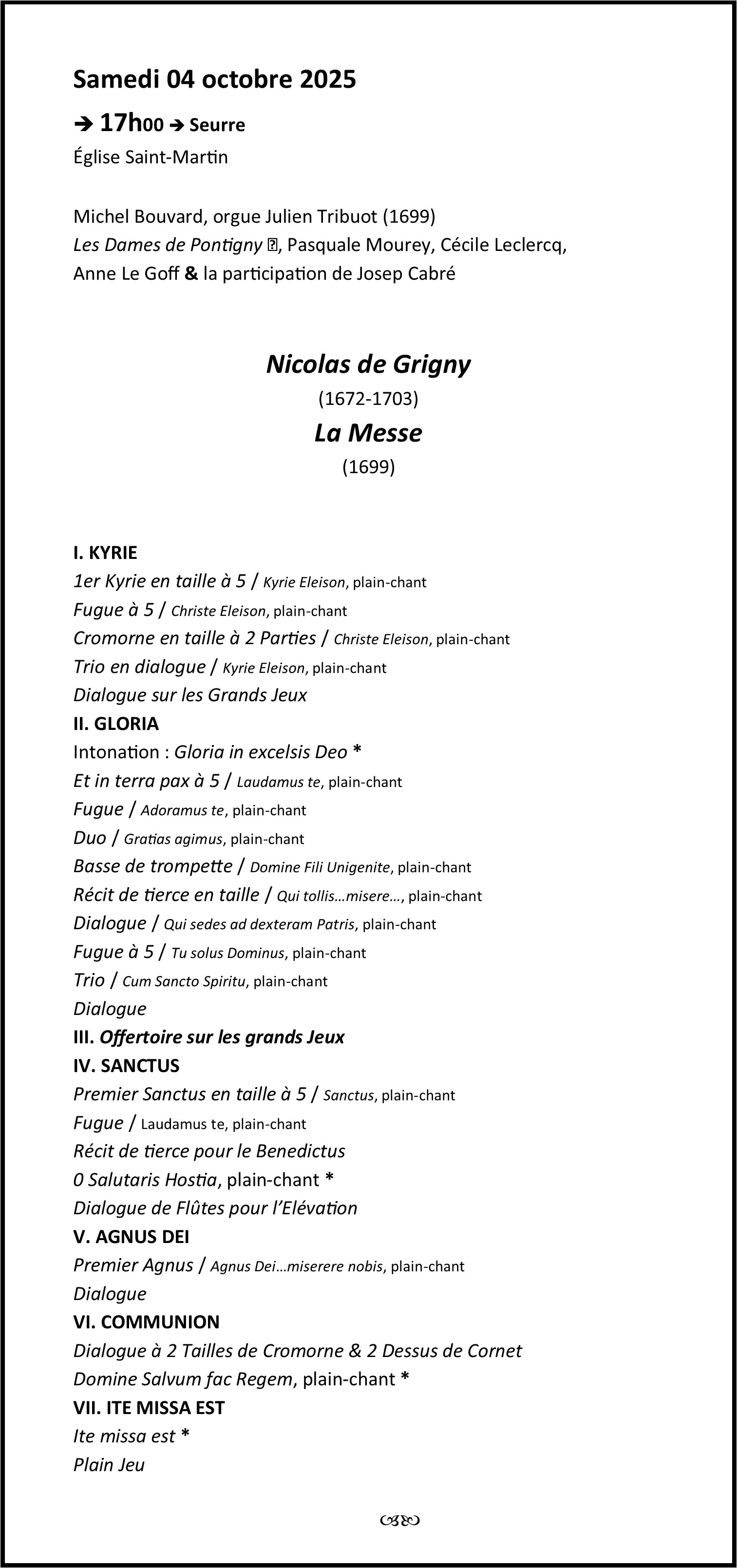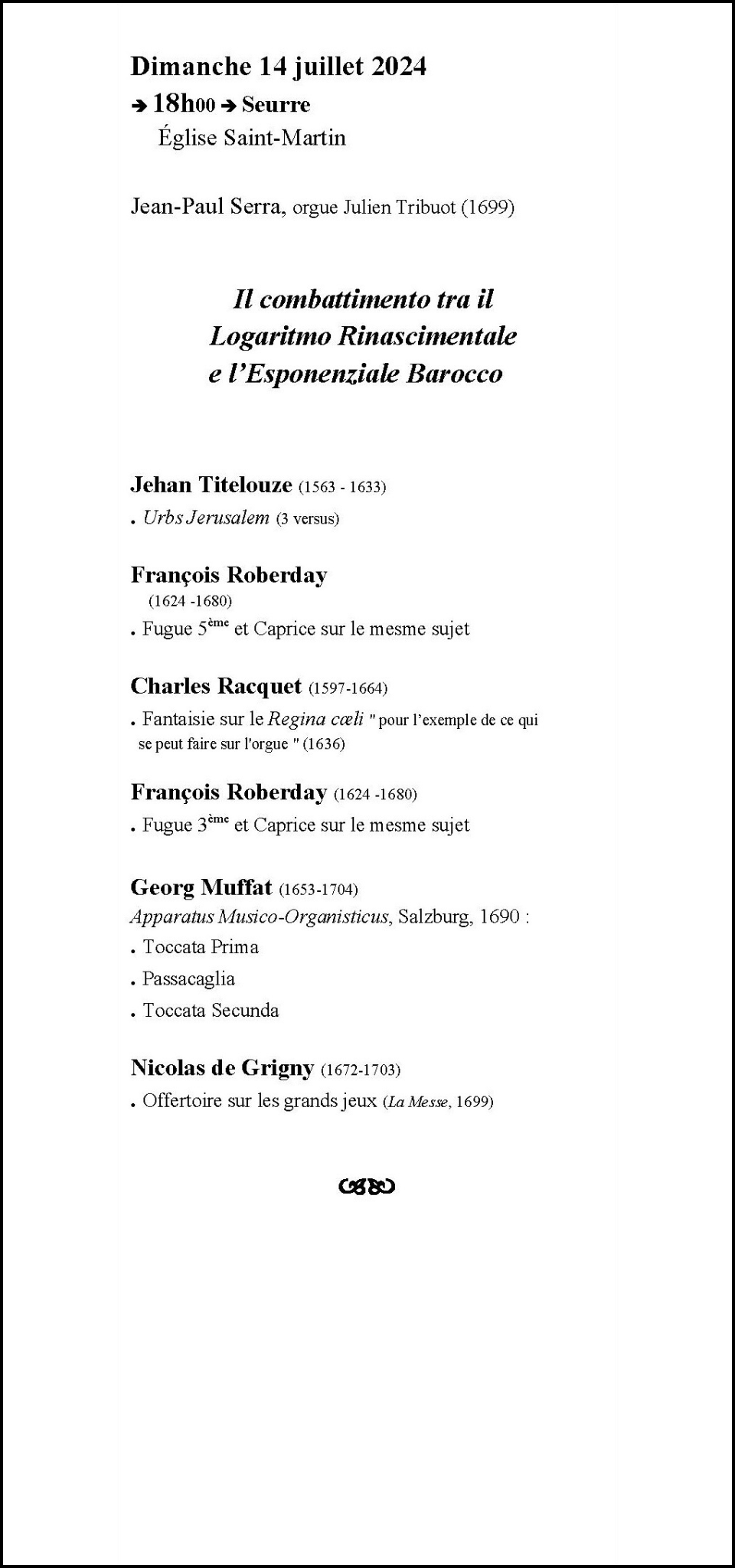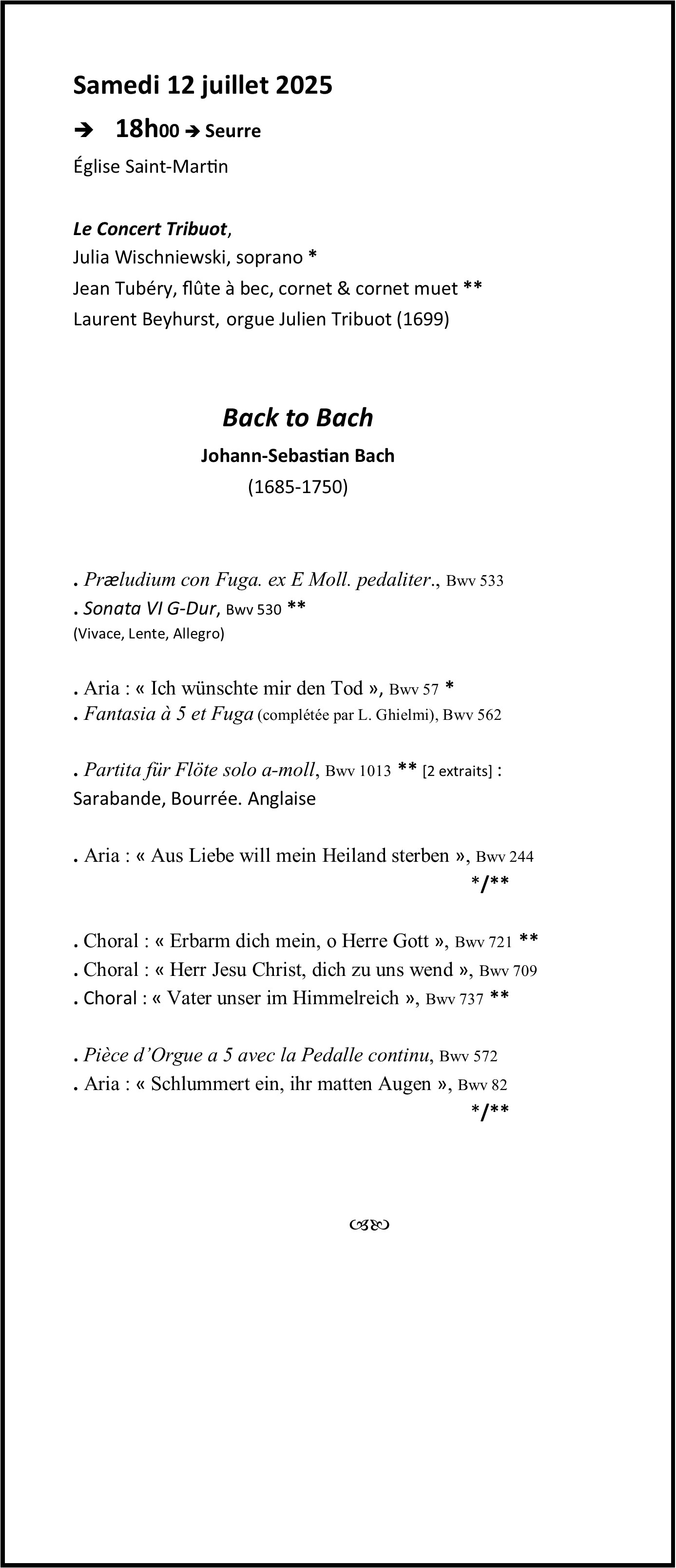 LES RENCONTRES DE MUSIQUE ANCIENNE DE SEURRE Saison 2025 (27èmes rencontres) Saison 2024 (26èmes rencontres)